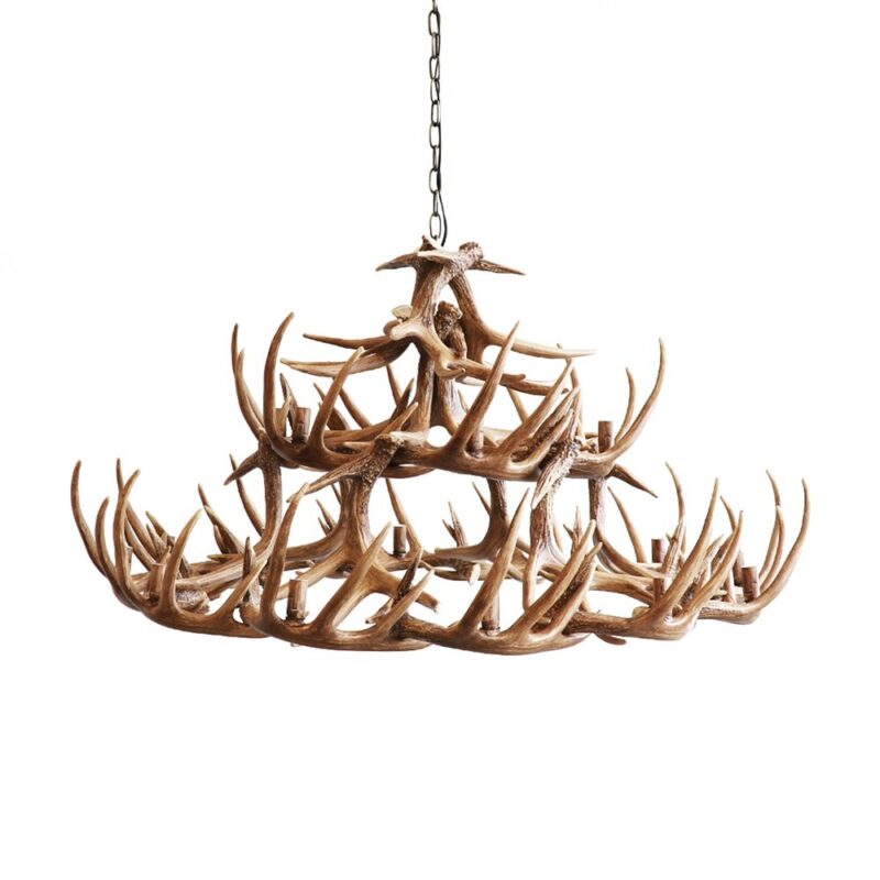 Truly reminiscent of a traditional alpine mountain lodges, this large sized, natural finish antler chandelier has a beautiful warm, rustic charm.