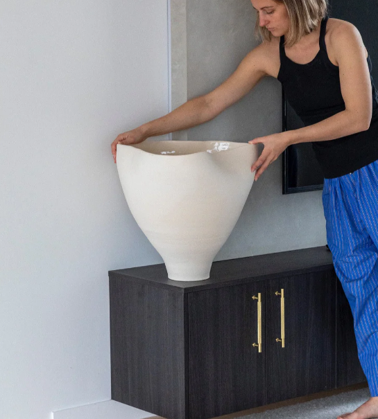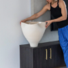 The Marlowe Vase is a real statement piece that changes with every angle, no one vase is the same. It has been designed for large bunches of flowers, perfectly sculpted to allow you to arrange dried, preserved or fresh bunches or simply left as a beautiful sculptural centre piece. A piece that makes you wonder, one that brings joy and imagination to any home or space.The Grande Marlowe Vase is the biggest piece in our range and is made to order. The making process varies but currently takes around 10 weeks to complete. Shipping out side of Auckland to be arranged separately. Due to its size prices can vary a lot depending on location. The grande is approx 43 cm tall and 45 cm wide at the widest point.