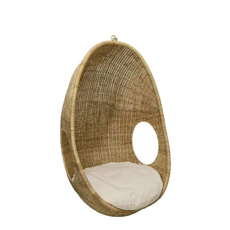 - Crafted in natural rattan, this pod chair is designed for under verandas and indoors. Needs to be protected from rain.