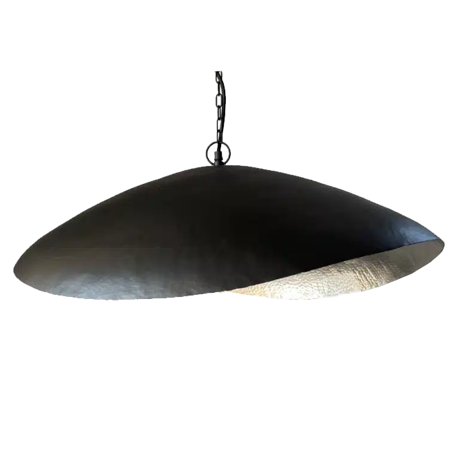 Black iron on the outside and Nickel on the inside. A dramatic shade for maximum effect.  60 x 72 x 22 cm