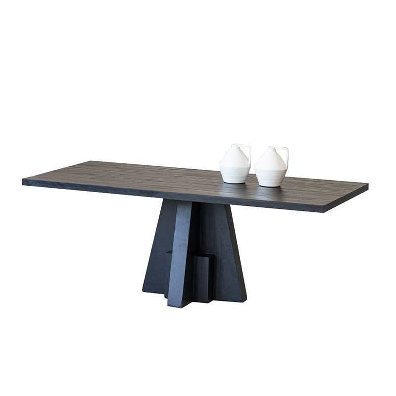 The Wedge dining table is in a brushed matt black finish.