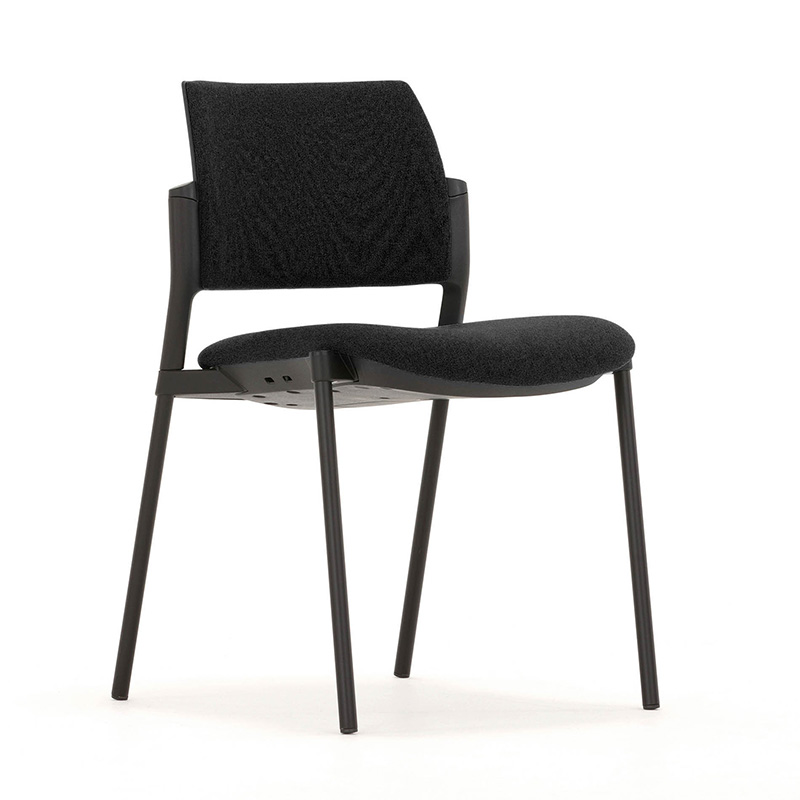Curved backrest for optimal comfort with perforated polyproplene outer back, Upholstered in black fabric.