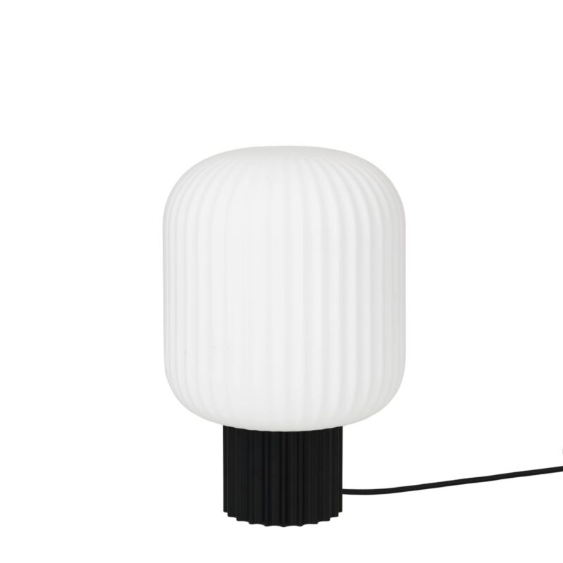 The collection consists of pendants and table lamps with a beautiful, ribbed surface following the metal base to the opal glass shade, which illuminates the room with a soft and warm light.