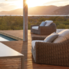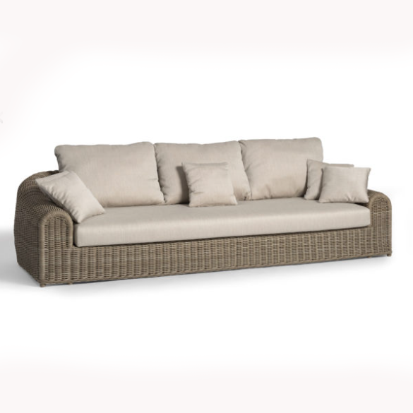 These contemporary pieces owe their name and inspiration to the meandering flow of a watercourse. Its exclusive 8mm full moon synthetic weave wraps around a light-weight powder-coated aluminium frame to achieve the elegant curves and shapes of this sofa. Comfort comes from the open cell Quick Dry foam cushions covered in UV resistant solution dyed nylon outdoor fabric and extra deep seating. Create a space for relaxing in this low-to-the-ground design and become one with nature.