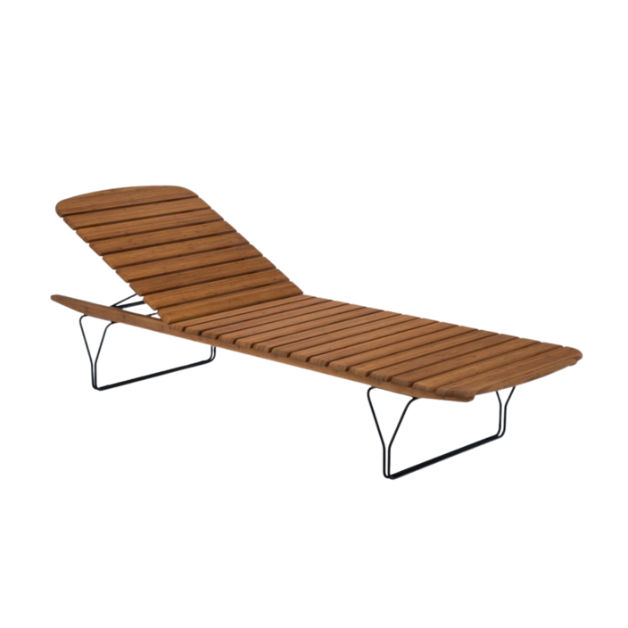 The MOLO Sunbed is made in bamboo lamellas with a decorative leg construction in powder coated black metal.