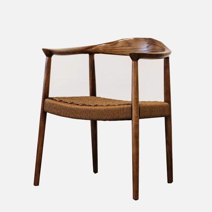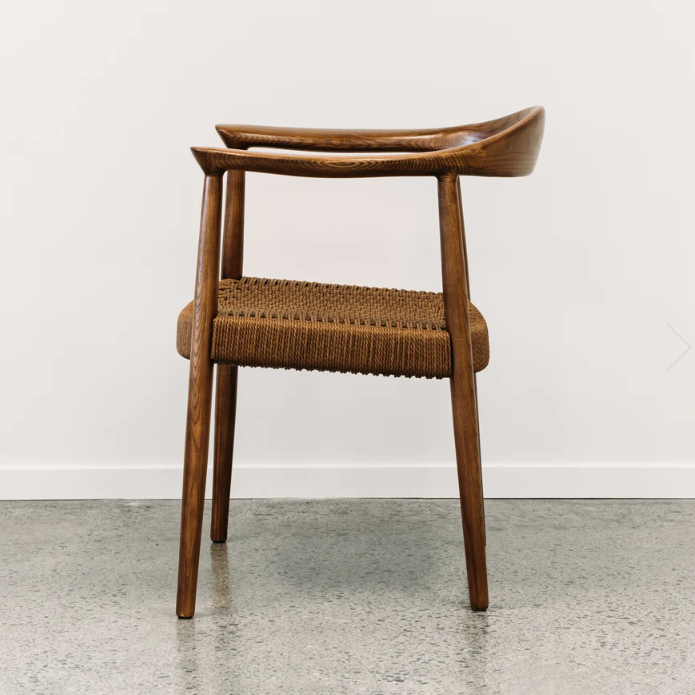 The Nara Dining Chair - Walnut boasts a classically mid-century shape, updated with a hardy North American Ash frame and intricate detailing using kraft paper rope.