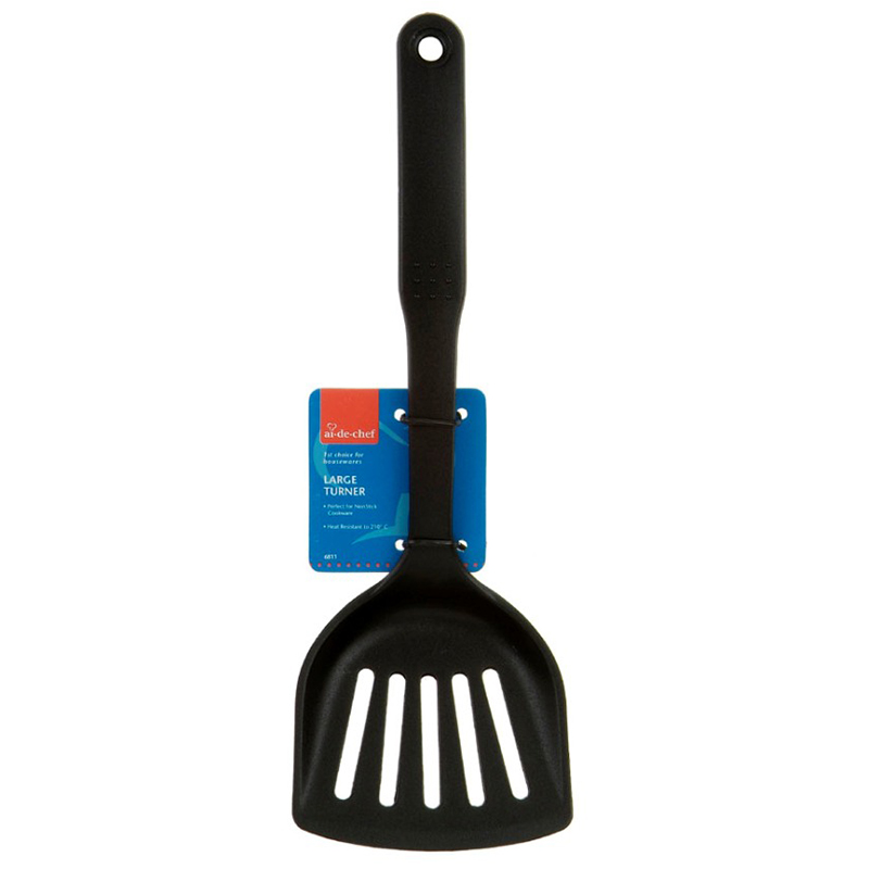 This turner is safe to use on non-stick pans and is heat resistant to 210°C.