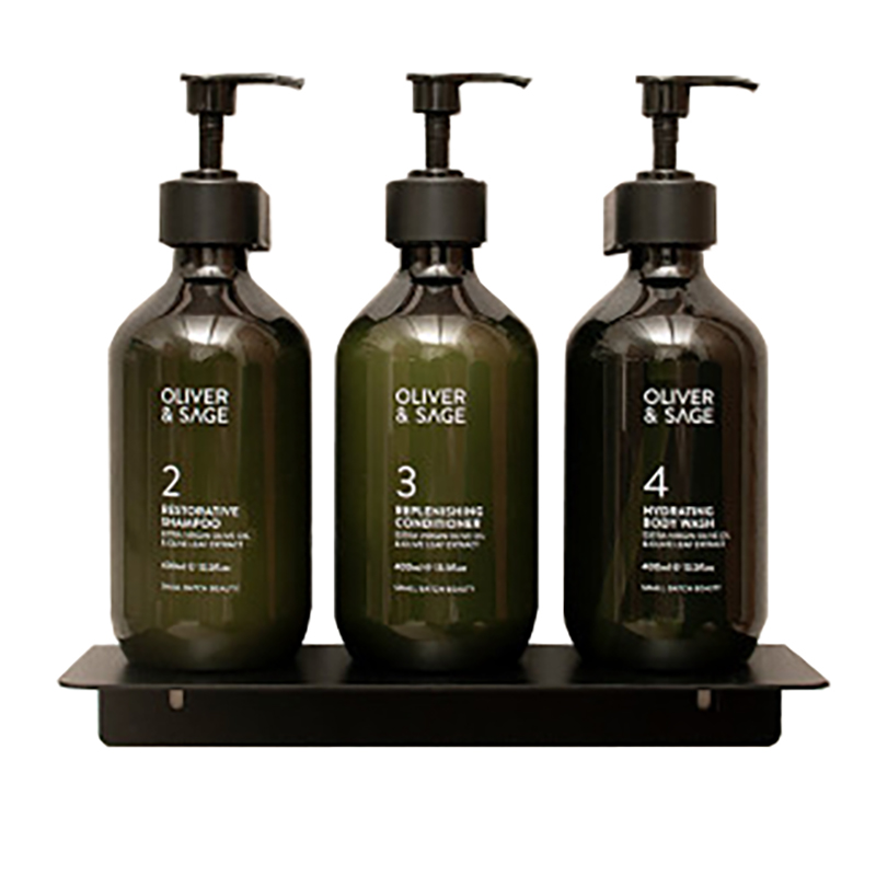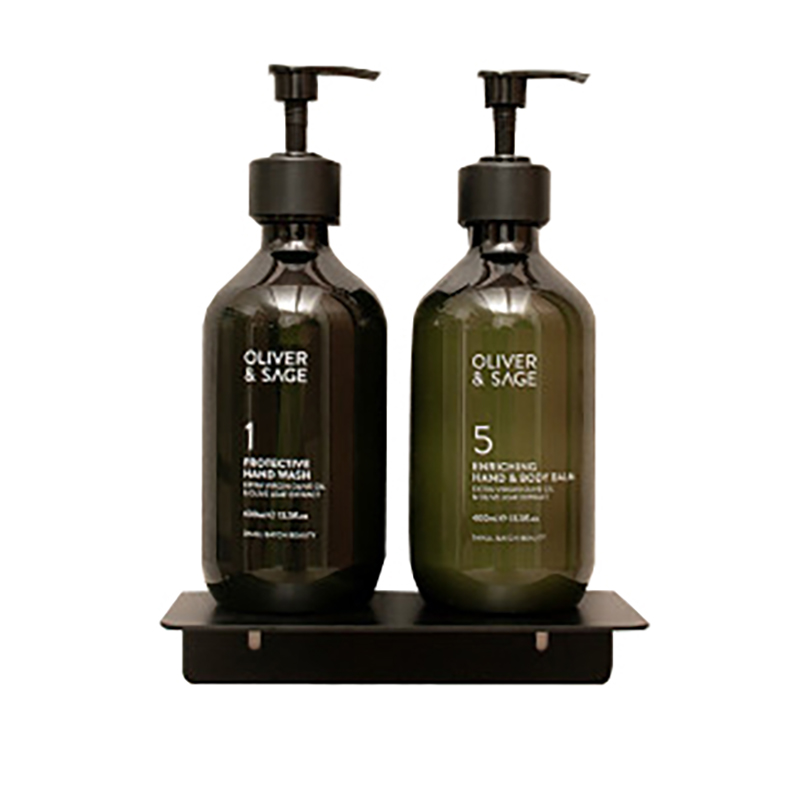 The double bracket is typically used for hand wash and hand lotion at the vanity or shampoo and conditioner in the shower.