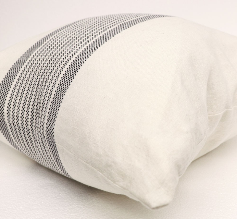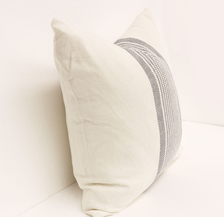 A soft white weave with thin horizontal stripes, a relaxed clean look to keep any space looking fresh. 100% Linen Cover with 100% Feather inner Measurements: 50cm (W) x 50cm (H)