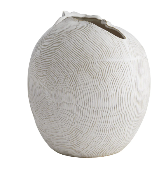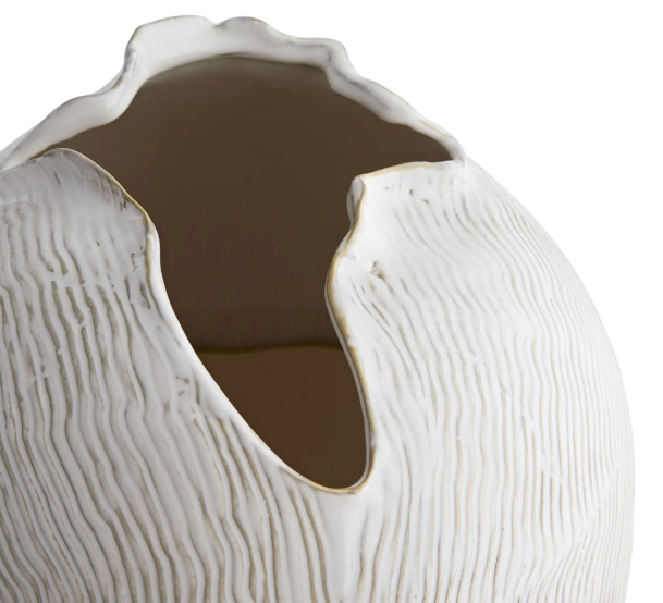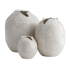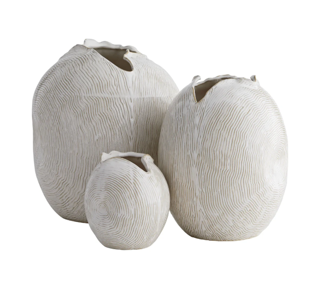 Deliver organic elegance to a tablescape with this set of ceramic vases. Each is different in shape and size and features a white-wash finish that creates faux bois texture. The mouth of each vase is organic in shape and tear-like—shapinga visual point of interest. This watertight trio is ideal for boasting various bouquets but is just as stunning as a grouped accent for a console table or bookshelf. Finish may vary