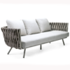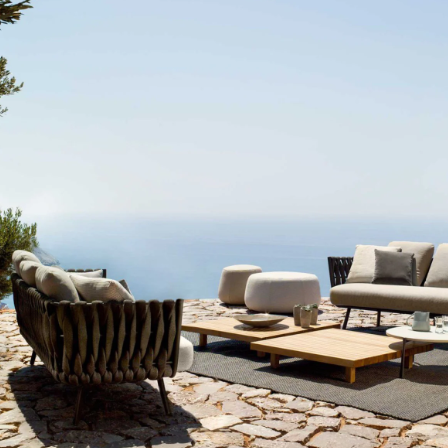 The material for the braiding is genuinely innovative : foam mousse is encased in a seamless sheath of knitted textilene and polyolefin which makes the material weather-resistant, but also surprisingly soft to the touch. The seating comfort is especially pleasant, thanks to the comfortable outdoor cushions. The soft ton-sur-ton colours in linen emphasise the chique character of this luxurious outdoor sofa.