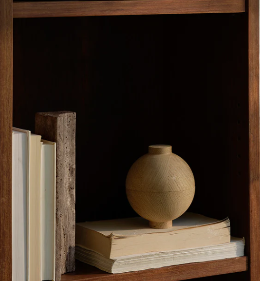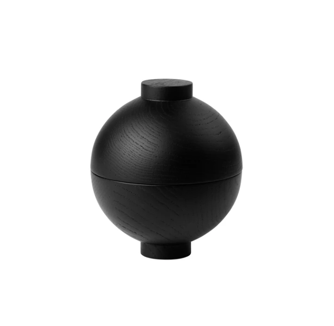 With its incredibly beautiful design and ability to display a wide range of smaller things in the most handsome way – the Wooden Sphere from Kristina Dam is a sophisticated, useful, ornament. The two turned wooden bowls form a Japanese inspired sphere when united. Use the Wooden Sphere as storage or use the bowl and lid separately as trays or a vessel. The world famous Danish liquorice-maker Johan Bülow has used the wooden spheres as display units when showcasing new assortments.